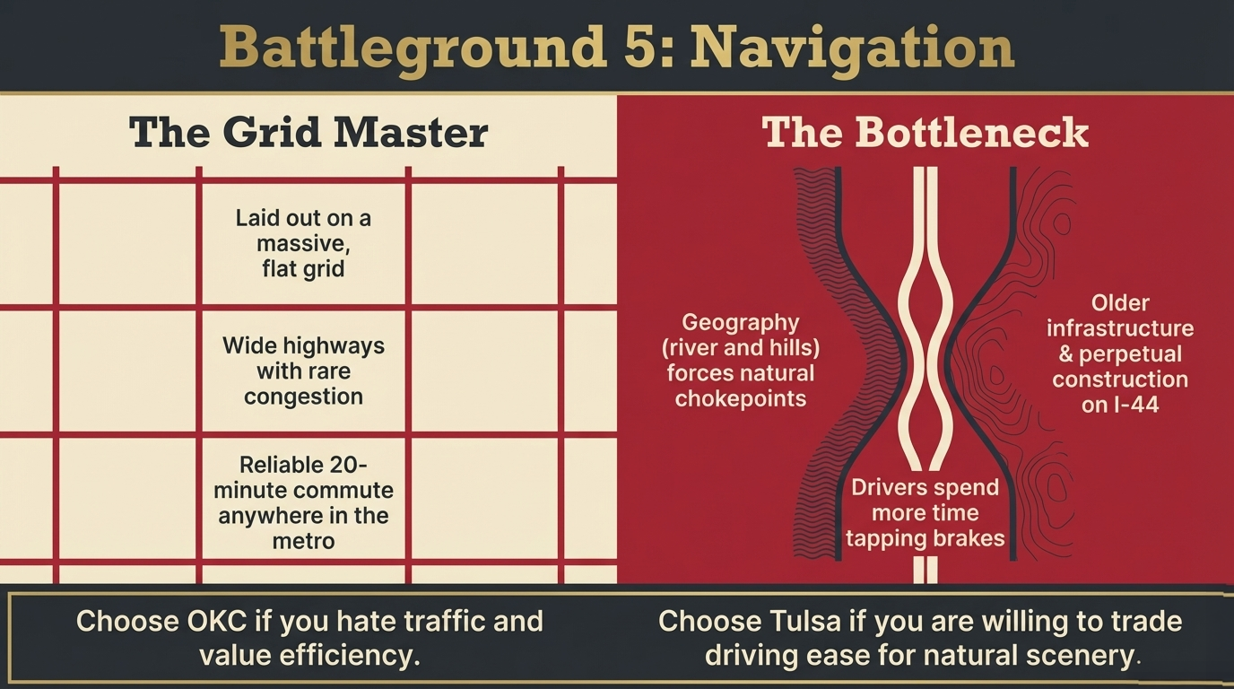 Let's be honest about the numbers. OKC metro commutes aren't Dallas-scale—they're across town, not across the state. But the math still adds up (or doesn't) depending on where you live and work.